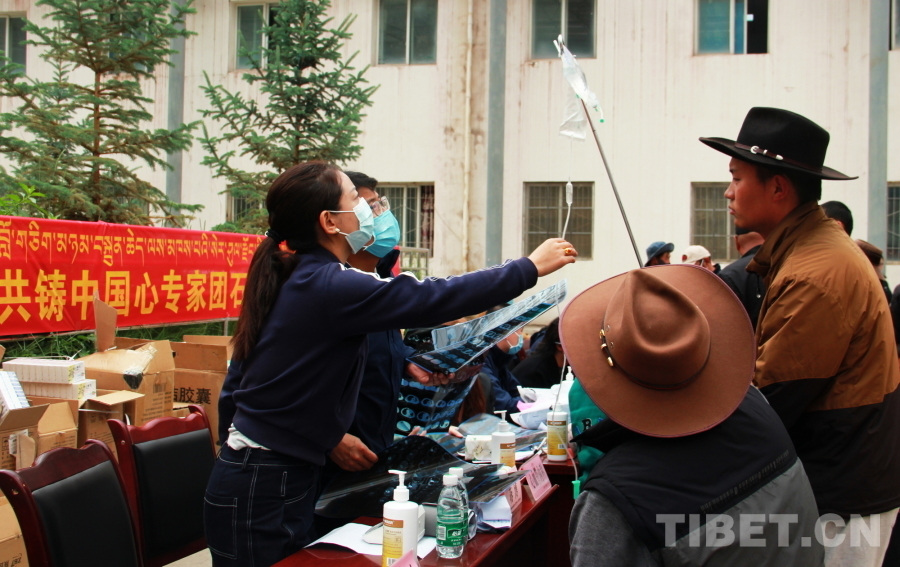 由于石渠縣海拔較高,參加義診的醫(yī)療專家們普遍發(fā)生頭暈、心悸等高原反應,有的血氧濃度甚至不到70%。在前往義診現(xiàn)場的車上還吸著氧的他們,見到這么多群眾排隊候診,顧不上身體不適,迅速投入到了診療工作中。