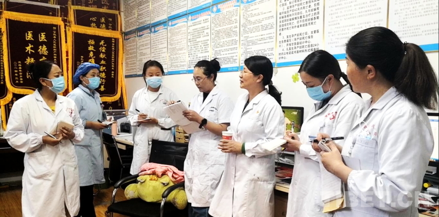 圖為航空總醫(yī)院婦科主任余立群(右三)為甘孜縣人民醫(yī)院婦產(chǎn)科醫(yī)生們召開術(shù)后總結(jié)會(huì) 攝影:劉莉