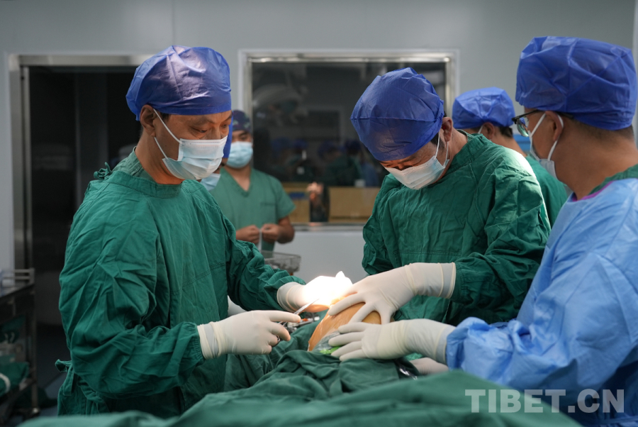 中國西藏網(wǎng)訊 2024年7月9日,在四川省甘孜藏族自治州巴塘縣人民醫(yī)院,“同心·共鑄中國心”醫(yī)務志愿者、北京積水潭醫(yī)院矯形骨科主任醫(yī)師李玉軍為一名患有膝關(guān)節(jié)病變的藏族患者實施了膝關(guān)節(jié)置換手術(shù)。