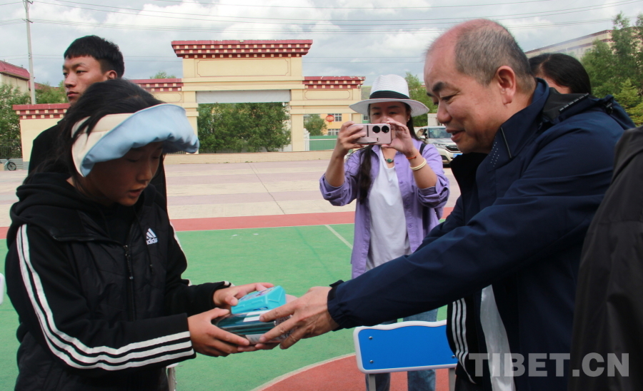 圖為中國中醫(yī)科學院西苑醫(yī)院婦科醫(yī)生杜小果為甘孜州康北兒童福利院的孩子們送上慰問品 攝影:劉莉