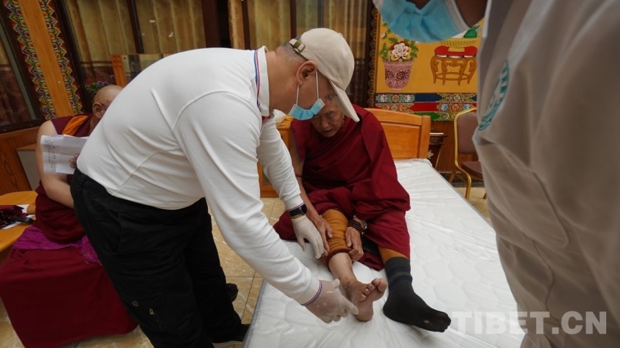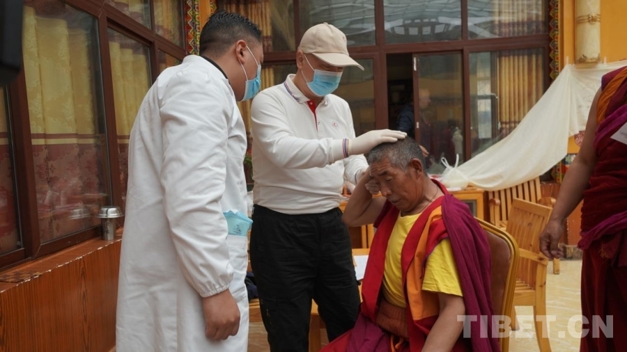 中國(guó)西藏網(wǎng)訊 7月10日,“同心·共鑄中國(guó)心”公益醫(yī)療團(tuán)隊(duì)走進(jìn)四川省甘孜藏族自治州理塘縣長(zhǎng)青春科爾寺(又名理塘寺),為寺內(nèi)僧人義診。現(xiàn)場(chǎng)義診的專(zhuān)家們平均年齡都在四十歲以上,他們都是一邊與高原反應(yīng)抗衡一邊堅(jiān)持義診,秉承著“缺氧不能缺精神”的態(tài)度堅(jiān)持工作。
