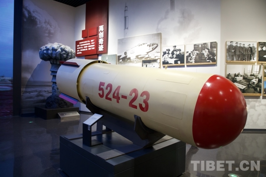 圖為中國第一顆機載氫彈模型。攝影:桑吉