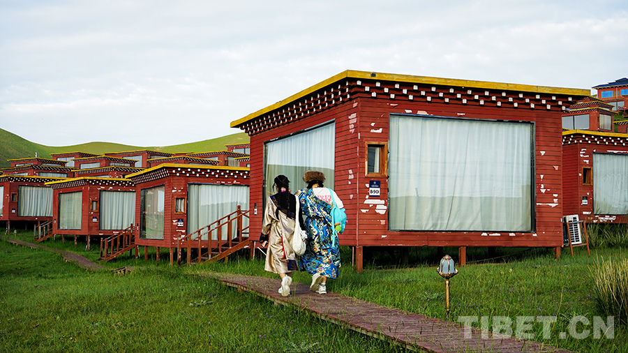 圖為兩名身著藏裝的香港學(xué)生準(zhǔn)備回到文迦牧場的小木屋中。攝影:李泓慶