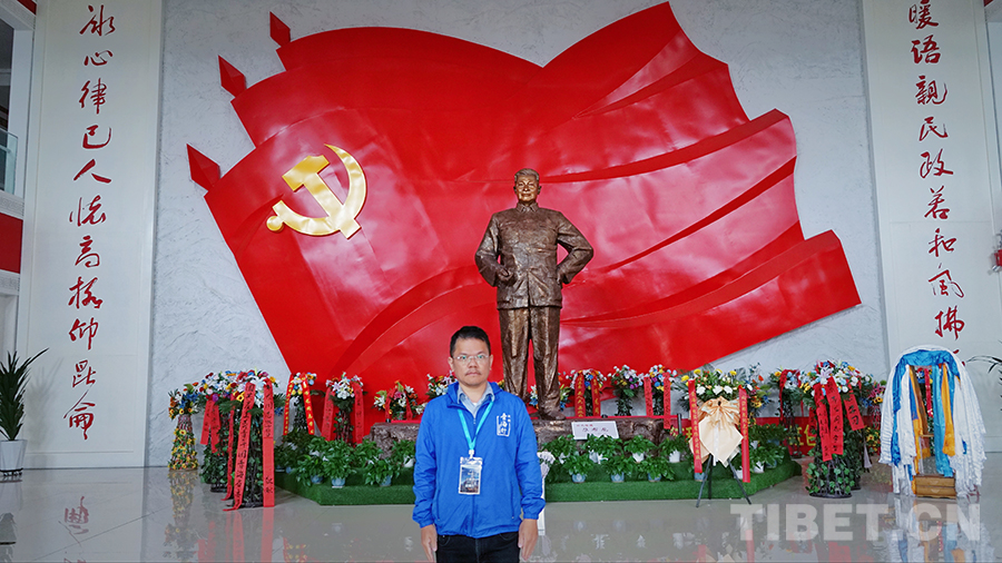 圖為青海省港區(qū)政協(xié)委員、本次研學(xué)團(tuán)副團(tuán)長(zhǎng)王偉杰在尕布龍時(shí)代楷模紀(jì)念館。攝影:李泓慶