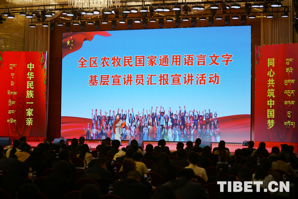 中國(guó)西藏網(wǎng)訊 “語(yǔ)言不僅僅是一種交流工具,它還承載著情感、態(tài)度和價(jià)值觀。即使在那曲,每個(gè)地區(qū)的方言都有很大的差別,正是因?yàn)閲?guó)家通用語(yǔ)言文字的使用,讓大家方便了溝通,增進(jìn)了相互了解?!?月28日,西藏全區(qū)農(nóng)牧民國(guó)家通用語(yǔ)言文字基層宣講員匯報(bào)宣講活動(dòng)在拉薩市開(kāi)展,來(lái)自那曲市巴青縣瑪如鄉(xiāng)曲古村的農(nóng)牧民宣講員達(dá)拉才措正在舞臺(tái)上向大家分享著她在基層宣講的經(jīng)歷。