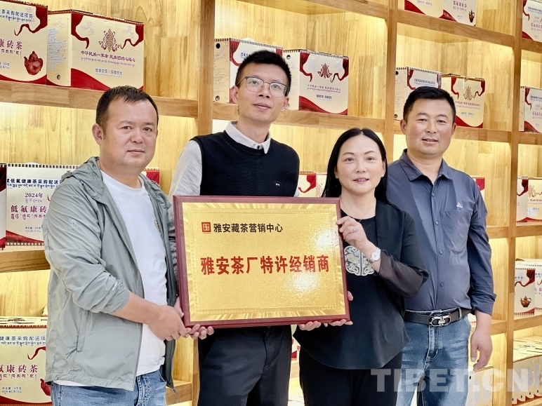 圖為頒發(fā)“雅安茶廠特許經(jīng)營商”牌匾現(xiàn)場 攝影:德吉卓瑪