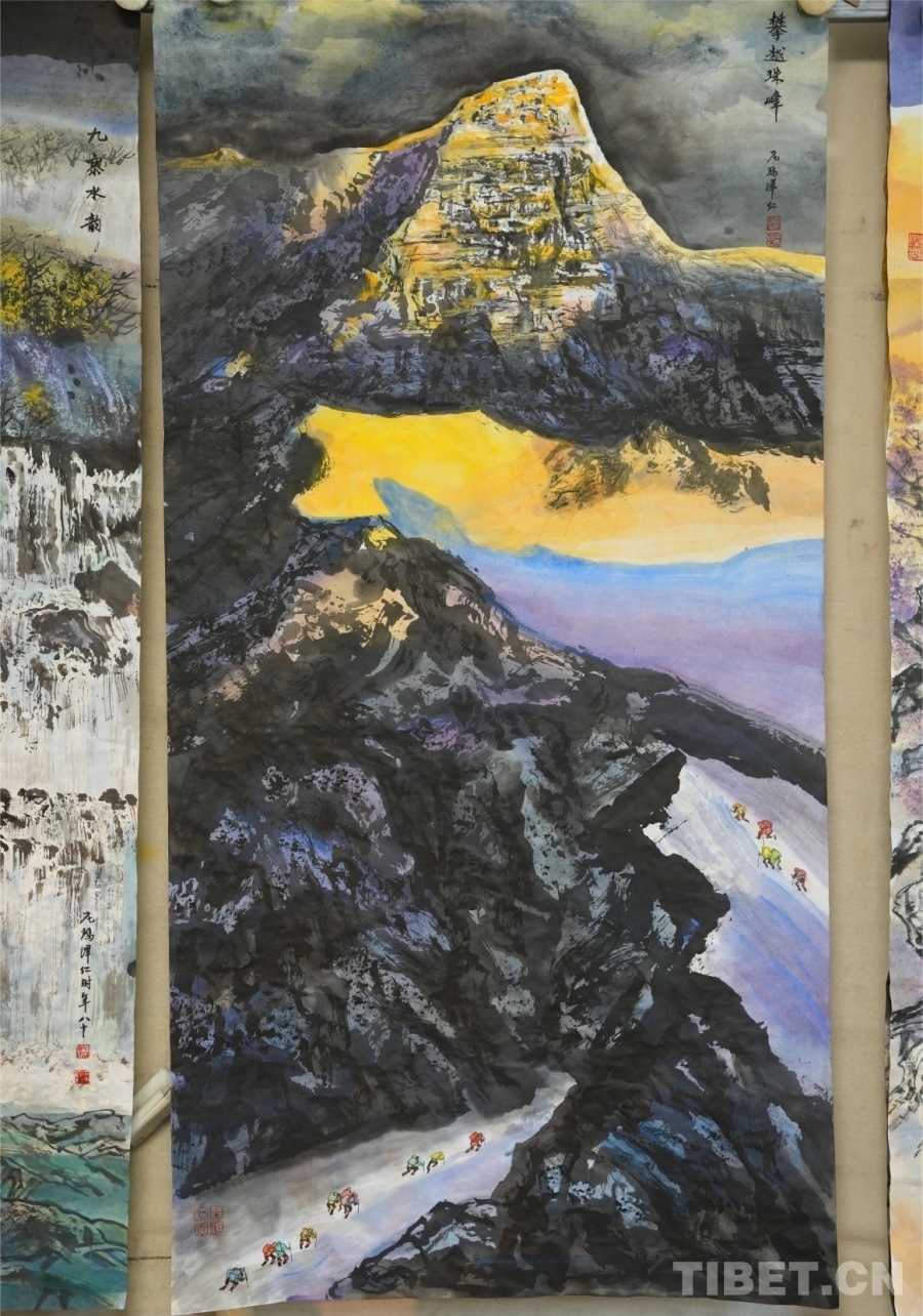 圖為尼瑪澤仁的畫(huà)作《攀越珠峰》 攝影:陳浩力