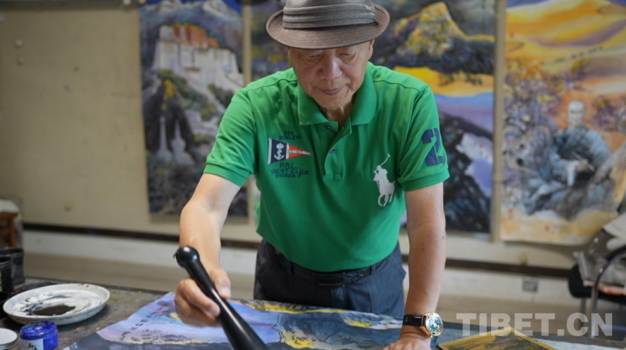 圖為尼瑪澤仁正在繪畫(huà) 攝影:陳浩力