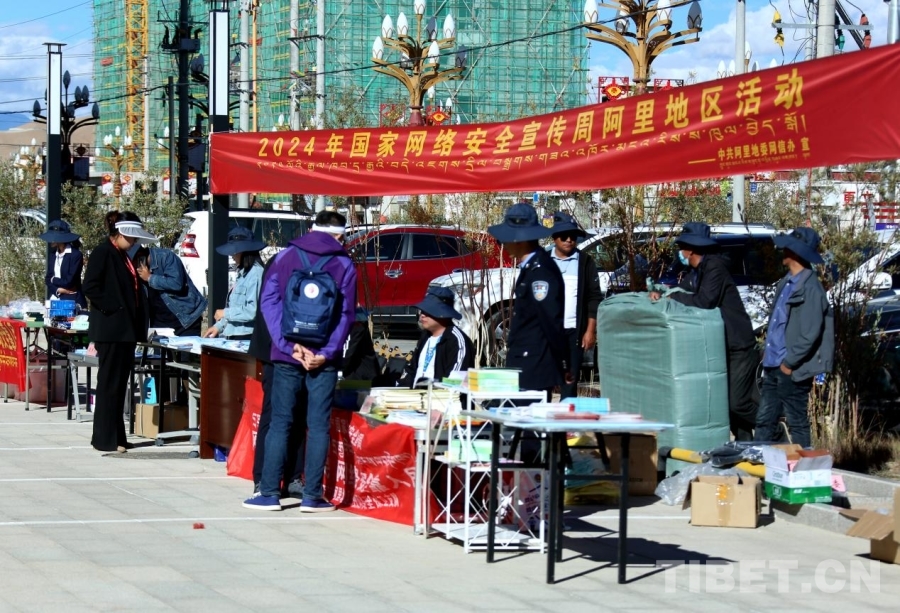 圖為當?shù)馗刹俊⑷罕姷葏⒂^2024年國家網(wǎng)絡(luò)安全宣傳周阿里地區(qū)活動集中宣傳活動 攝影:王佳豪