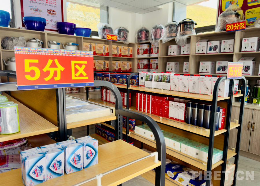 一進(jìn)入積分兌換超市,貨架上琳瑯滿目的商品吸引了記者的目光,貨架主要分為5分區(qū)、10分區(qū)、15分區(qū)和20分區(qū)。在5分區(qū)可以兌換到作業(yè)本、香皂、濕巾,10分區(qū)可以兌換到家庭裝的洗潔精和洗衣粉以及電源插排,15分區(qū)可以兌換到移動(dòng)電源、多功能探照燈、保溫杯和大包衛(wèi)生紙。想要兌換市場(chǎng)價(jià)上百元的電飯煲、高壓鍋、酥油打茶機(jī)也不是難事,只需要20積分,就可以輕松兌換。