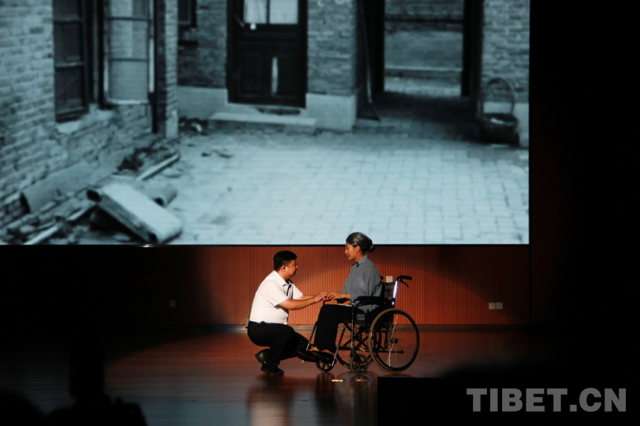 圖為孔繁森同志數(shù)字形象制作啟動儀式上,孔繁森精神教學(xué)基地工作人員再現(xiàn)孔繁森同志第二次赴西藏工作前與年邁的母親告別的場景 攝影:劉莉