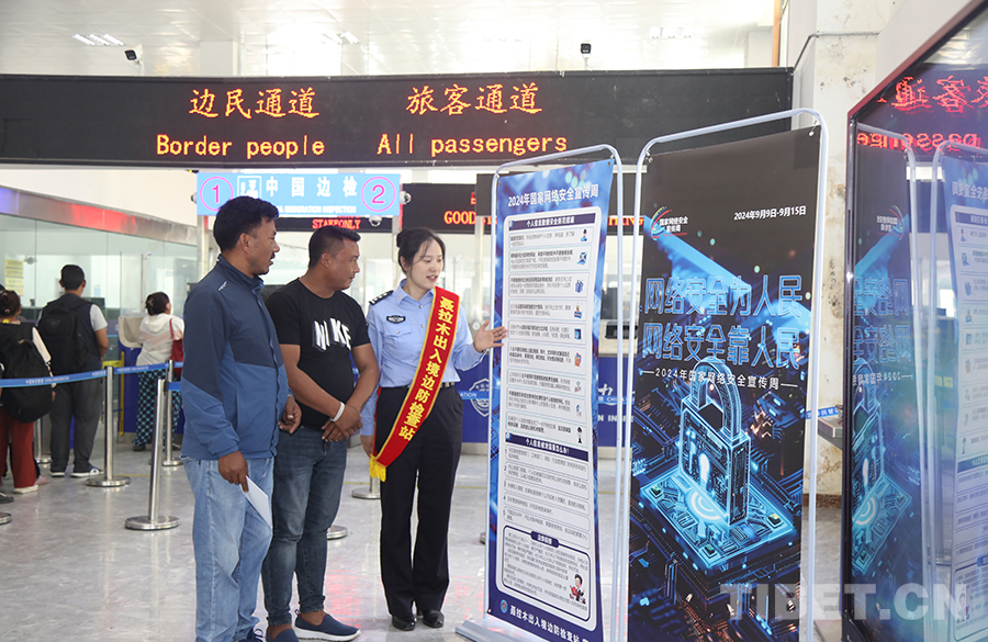 中國(guó)西藏網(wǎng)訊 近日,位于中尼邊境的西藏聶拉木出入境邊防檢查站圍繞“網(wǎng)絡(luò)安全為人民,網(wǎng)絡(luò)安全靠人民”主題,結(jié)合“夏季治安打擊整治行動(dòng)”,在樟木口岸開(kāi)展網(wǎng)絡(luò)安全宣傳周集中宣傳活動(dòng),累計(jì)發(fā)放各類(lèi)宣傳資料300余份,接受群眾咨詢(xún)100余人次。