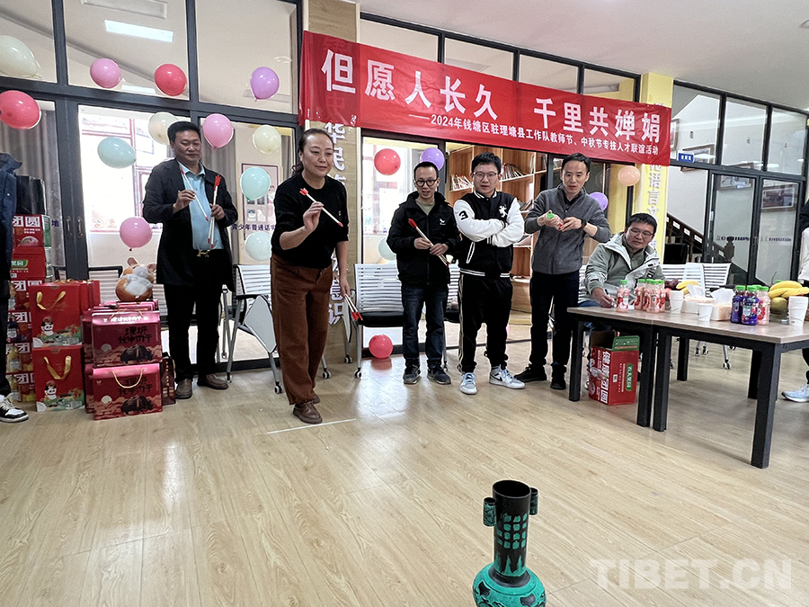 中國(guó)西藏網(wǎng)訊 9月13日,為慶祝中秋佳節(jié)和第四十個(gè)教師節(jié),浙江省杭州市錢塘區(qū)駐四川省甘孜藏族自治州理塘縣工作隊(duì)全體專技人才在理塘縣青少年普通話實(shí)訓(xùn)基地歡聚一堂,共話團(tuán)圓。