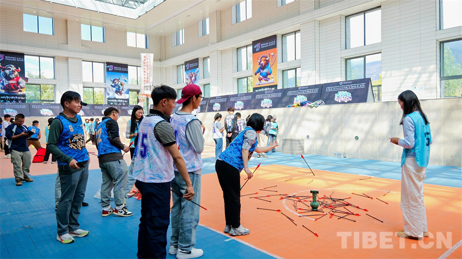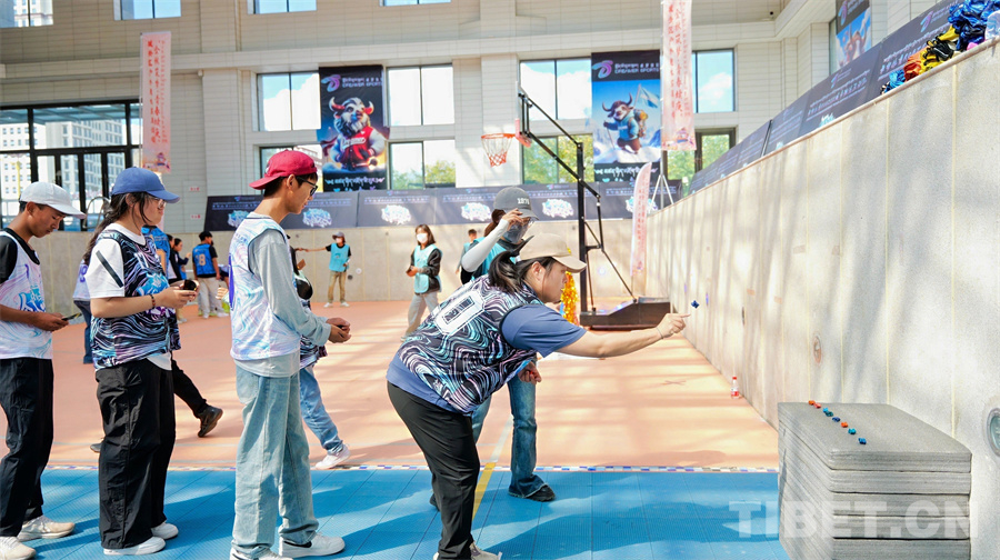 “投壺是中國古代宴飲時做的一種投擲游戲,也是一種禮儀。愛看古裝劇的人應(yīng)該都在影視作品里看過,這是一個由游戲者輪流站在離壺一定距離的地方,用手把箭投向壺中并計算得分的游戲。”“打牛角和阿久(羊拐)是一項流傳至今的西藏古老民間傳統(tǒng)體育活動,具有很強的娛樂性、趣味性和技巧性,能夠鍛煉身體,還能給我們帶來參與其中的快樂……”每項活動開啟前,晉美次旦向現(xiàn)場參與人員一一講解這項運動的由來以及發(fā)展現(xiàn)狀,大家聽得十分認真,隨后又積極參加各項活動。活動現(xiàn)場熱鬧非凡、歡聲笑語不斷,營造了濃厚的健身氛圍。