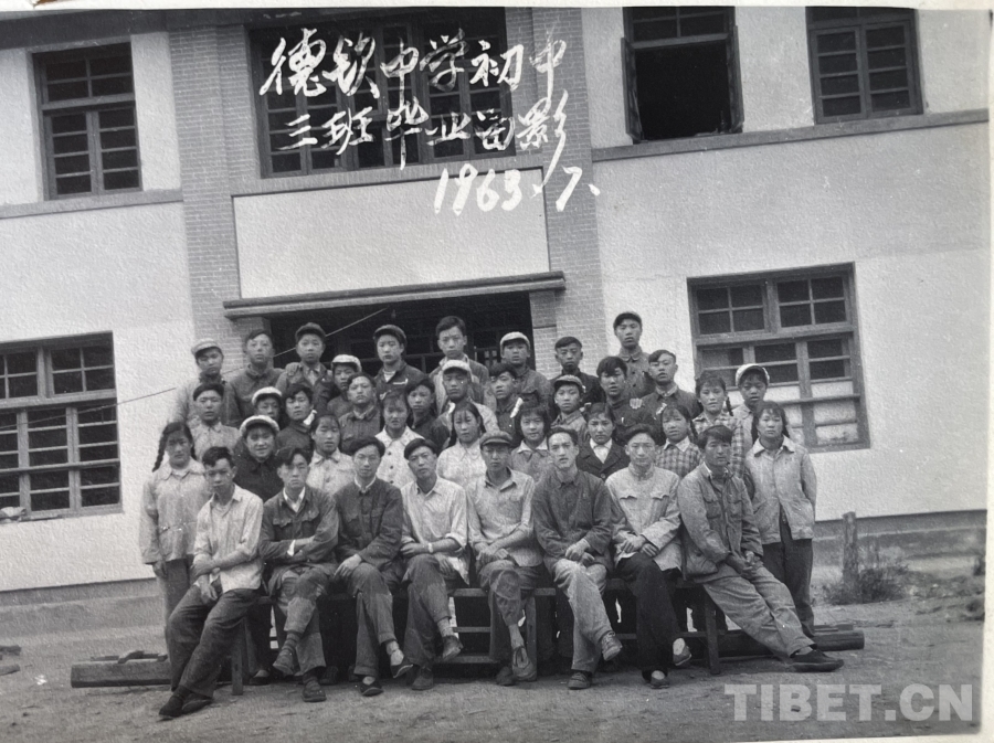 圖為1963年,訪談對象牛宿光(前排左二)與德欽中學初中三班畢業(yè)合影 供圖:李志農