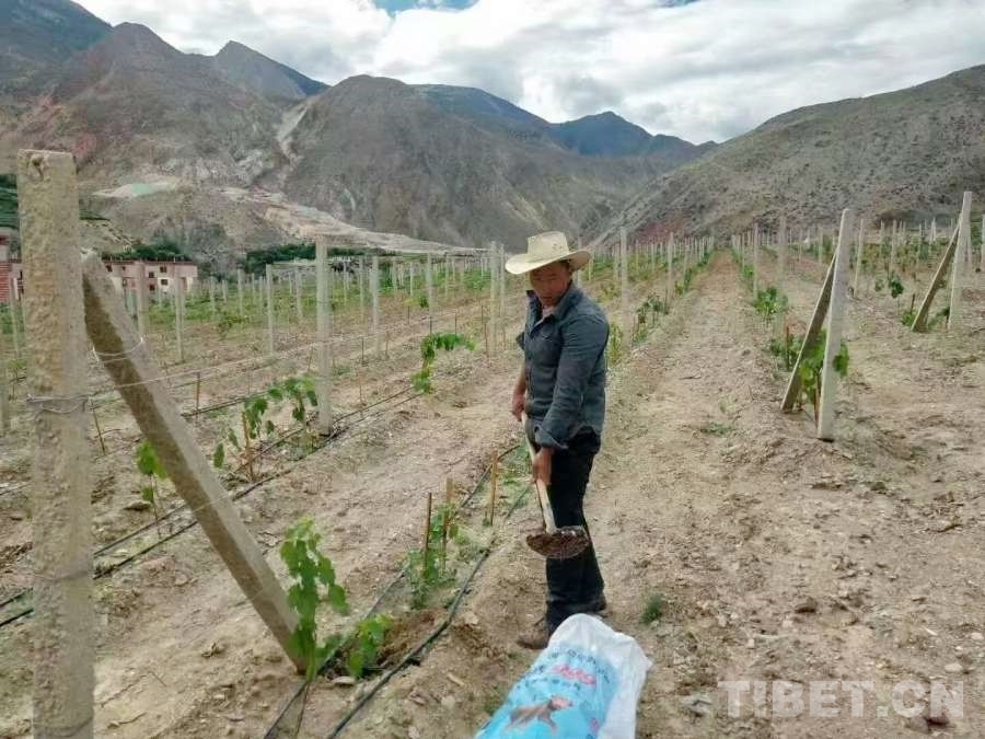 在風(fēng)景如畫的八宿縣林卡鄉(xiāng)孜嘎村,有一片占地面積200畝的葡萄種植基地,也是昌都市海拔最高的葡萄種植基地。2016年,八宿縣計(jì)劃建立葡萄種植基地,來自芒康縣納西民族鄉(xiāng)的次成江措在項(xiàng)目中標(biāo)后成為該基地的負(fù)責(zé)人。在次成江措的家鄉(xiāng)芒康,種植葡萄已經(jīng)有200多年的歷史。從小耳濡目染,使他成為遠(yuǎn)近聞名的葡萄種植專家。剛接到這個(gè)項(xiàng)目時(shí),由于對八宿縣地理環(huán)境不甚了解,次成江措內(nèi)心并沒有十足的把握。隨后,他從家鄉(xiāng)帶來優(yōu)質(zhì)葡萄品種“黑珍珠”,驚喜地發(fā)現(xiàn)得益于八宿縣海拔較高、紫外線充足、降雨量較少的優(yōu)勢條件,“黑珍珠”的生長情況超出了他的預(yù)期,甚至不需要使用農(nóng)藥?! ?/p>