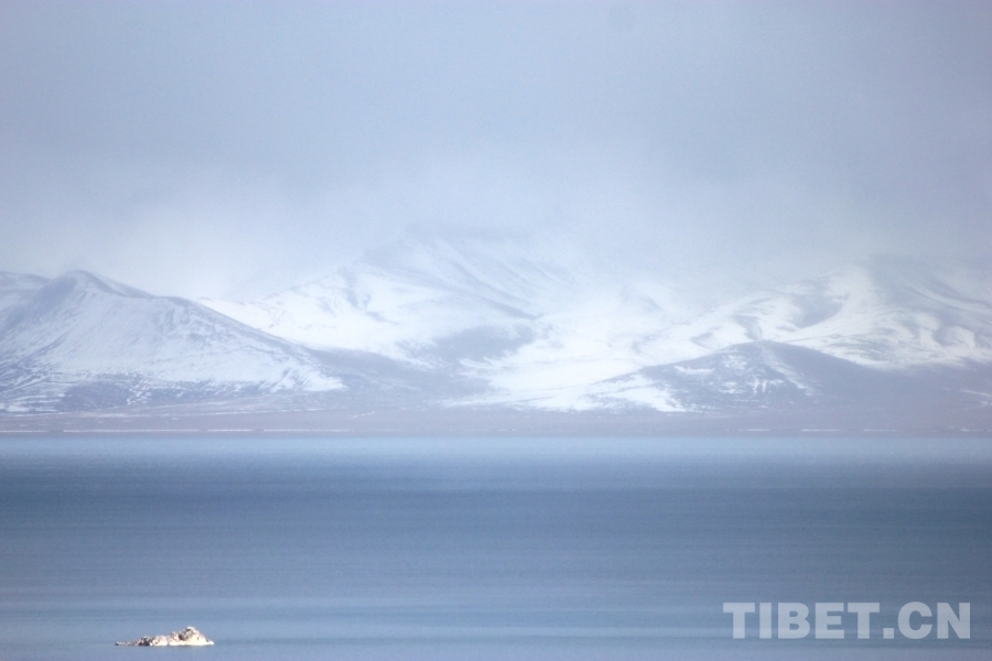 中國西藏網訊 納木錯湖水湛藍,湖面波光粼粼,圣象天門矗立在納木錯北岸,遠處的雪山綿延,靜謐,祥和。