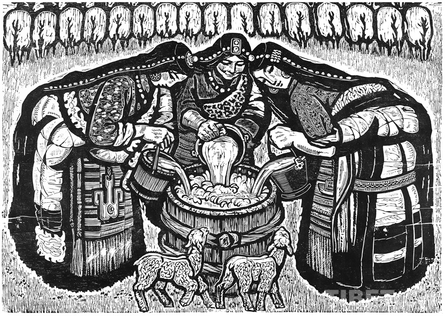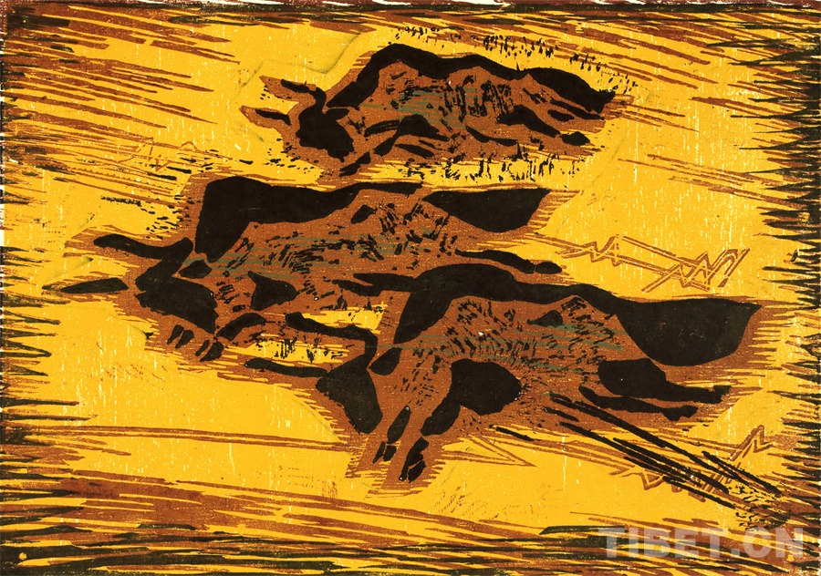 這些年來可以肯定的是我的創(chuàng)作道路和方向是基本對頭的。前幾年有人寫文章評論說,在外來思想影響已很豐富、多元化格局已經(jīng)形成的情況下,差不多只有版畫還恪守著現(xiàn)實主義的創(chuàng)作道路,而且在美術(shù)領(lǐng)域起到了導(dǎo)向作用。順便為版畫說句話:搞版畫的人一直尊重生活,認(rèn)定生活是第一性的,版畫一開始就是在革命的環(huán)境中發(fā)生、發(fā)展起來的。版畫隨著四大發(fā)明發(fā)源于中國的土壤,后來被歐洲發(fā)展了,反過來又影響到中國。老大的中國有發(fā)明權(quán),但并沒有把它發(fā)展起來。魯迅先生為了推動版畫的發(fā)展,特別介紹了德國版畫和俄羅斯版畫為代表的版畫代表作和代表人物,還有美國的肯特,比利時的麥綏萊爾。介紹文字很精彩,無論對生平、對作品的介紹都很精彩。他推出的那些版畫大師,至今仍巍然屹立在美術(shù)史上。他對版畫的深刻而獨(dú)到的理解很可貴。國外有些不很知名但有好作品的,他也介紹到。而且給我們指出哪些是范本,我們一看果然耳目一新。魯迅先生的提倡影響了中國版畫的發(fā)展,進(jìn)入了一個嶄新的階段,形成所謂新興版畫。這段時間并不長,也就六七十年吧。版畫統(tǒng)領(lǐng)潮流,面向生活的潮流。所以它的路子就很正,這個正就是正統(tǒng),一直發(fā)展得很健康。我從小就受影響,我當(dāng)時所看到的版畫都是反映民間生活的東西:戰(zhàn)爭年代反映民間的疾苦與災(zāi)難,和平年代反映民眾的感情和生活,所表現(xiàn)的風(fēng)景也由平常人眼中投射。一句話就是為人民服務(wù)指導(dǎo)下的藝術(shù)創(chuàng)作。如果問我的作品和生活的距離有多大,可說距離是小的,并未受到更多潮流的干擾,并未背離為人民服務(wù)的方向。正因如此,我要把西藏題材表現(xiàn)好,表現(xiàn)在一個理想的藝術(shù)高度上,而且這一高度還能讓一般欣賞者達(dá)到。我的理想就是這樣,要達(dá)到這一目標(biāo)看來還很費(fèi)勁。