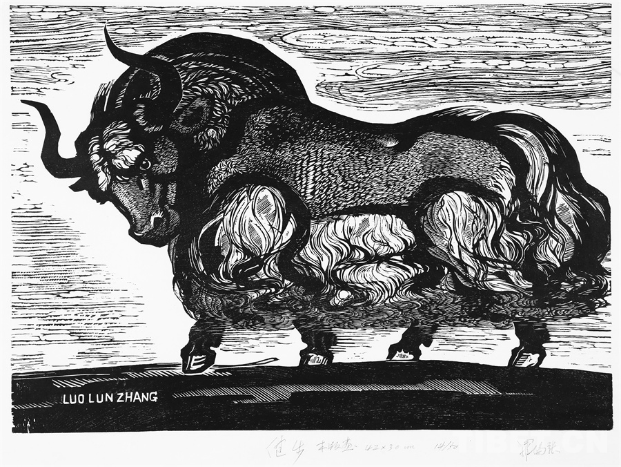如果非要說我在版畫技法上有什么創(chuàng)新,參照西藏匠人刻經(jīng)文,在石頭上刻出來然后印出來也許就算。這不是一般石版畫概念,那叫石印,平版印刷;我這是凹版印刷??唐饋砗苜M(fèi)勁,我也不管費(fèi)不費(fèi)勁。我有一批這樣的石刻作品。綜合版作品手法較多,我通常分別在石板和木板上刻,然后套起來印。如果搞學(xué)術(shù)交流,也許值得一談。至于說到創(chuàng)新,第一我不認(rèn)為我有什么創(chuàng)新,第二我不認(rèn)為在藝術(shù)上、在美術(shù)上能夠輕易談創(chuàng)新這個詞。還有第三個觀點(diǎn):不需要創(chuàng)新。很簡單,你先把傳統(tǒng)學(xué)到手再說。既是傳統(tǒng),就有它的存在理由,否則早就夭折了,還傳什么統(tǒng)呢?傳,而且統(tǒng)??!統(tǒng)是什么意思?基調(diào)是它統(tǒng)一起來的。先把傳統(tǒng)學(xué)到手,爐火純青了,神來之筆出現(xiàn)了,才有可能有所創(chuàng)造?;A(chǔ)是重要的。