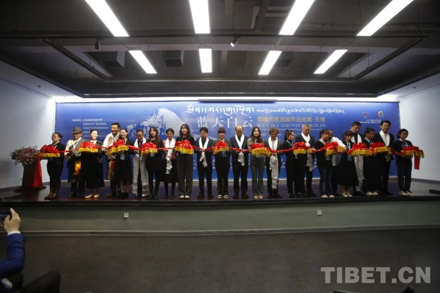圖為來自西藏自治區(qū)和江蘇省無錫市的嘉賓為展覽開幕剪彩