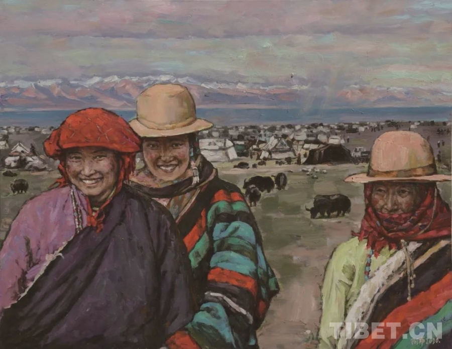圖為“藍(lán)天白云——雪域高原油畫作品巡展”作品《桑嘎古多》(50x70cm 布面油畫)作者:扎西次仁