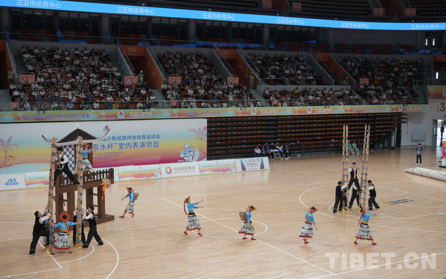 中國(guó)西藏網(wǎng)訊 11月24日,第十二屆全國(guó)少數(shù)民族傳統(tǒng)體育運(yùn)動(dòng)會(huì)表演項(xiàng)目(室內(nèi))在海南省三亞市體育中心體育館舉行。(中國(guó)西藏網(wǎng) 記者/蘇洋)
