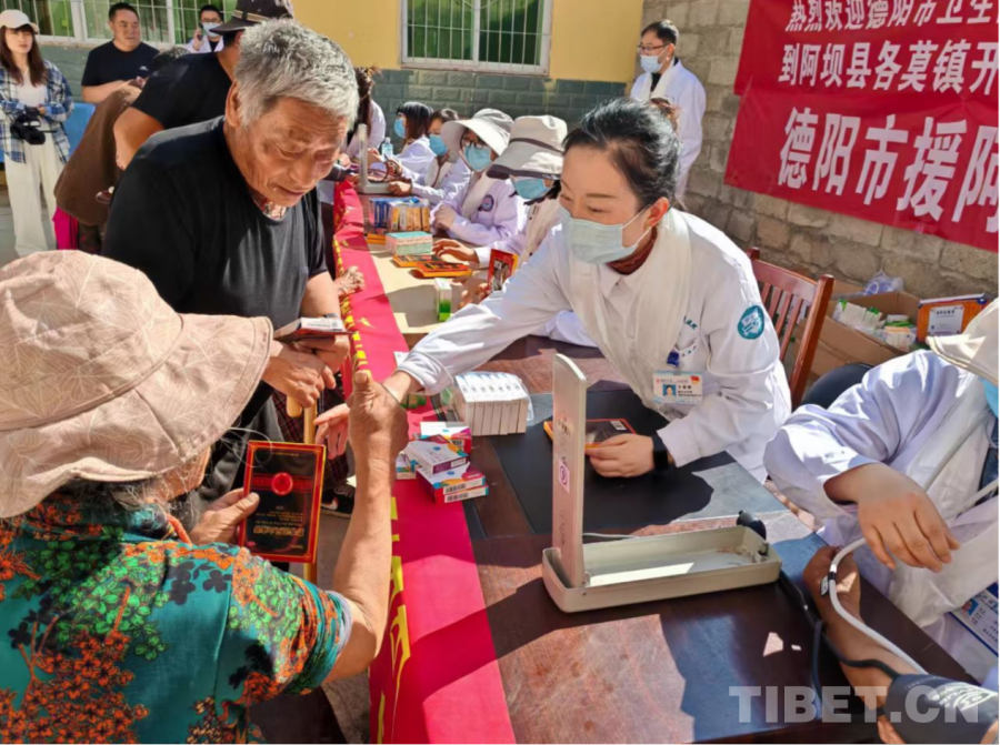 圖為德陽援藏醫(yī)療隊員和若爾蓋當(dāng)?shù)厝罕姾嫌啊∈茉L者供圖