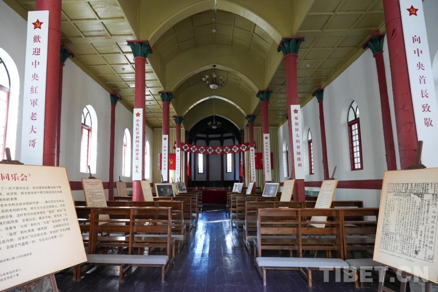 紅軍懋功同樂會(huì)舊址,位于四川省阿壩藏族羌族自治州小金縣(舊稱懋功)的天主教堂,是一處具有重要?dú)v史意義的紅色遺址。這座建筑融合了中式結(jié)構(gòu)與西式造型,整體布局為坐西向東的四合院落,由經(jīng)堂、東側(cè)廳堂、北側(cè)廂房三部分組成。