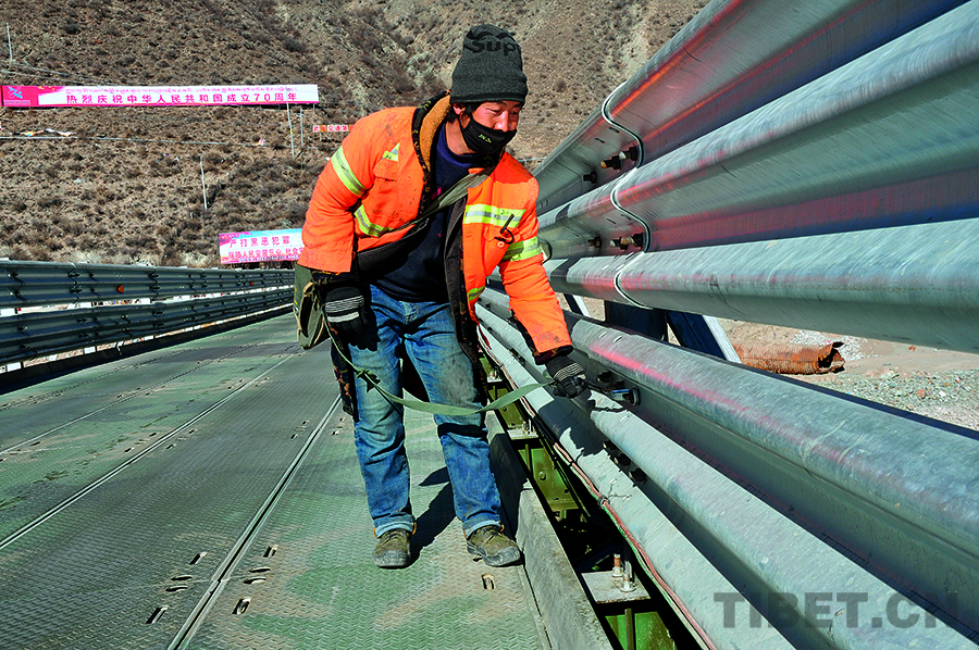 在西藏公路上行車,往往能見到忙碌的養(yǎng)護人。他們要么揮锨清除公路邊的雜物,要么驅車沿途巡查,要么在群山中清除路障,要么在緊鋼架橋護欄上的螺絲。在一條條公路上,川流不息的不僅有車輛,還有勇往直前的徒步者。有沒有人注意到,自己春夏秋冬能在西藏大地上自由穿梭,是因為高原上的大路平坦暢通。為他們保駕護航的,正是那些猶如盛開在山腳下、公路旁黃色小花的養(yǎng)護人。