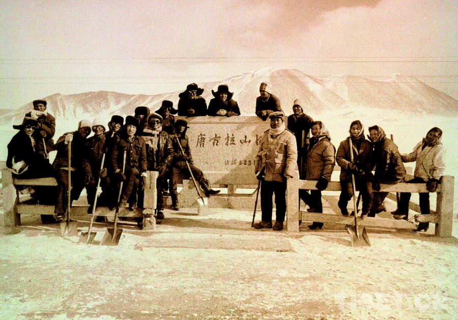 《109道班工人在青藏公路最高點的唐古拉山口合影留念》 作者:唐召明
