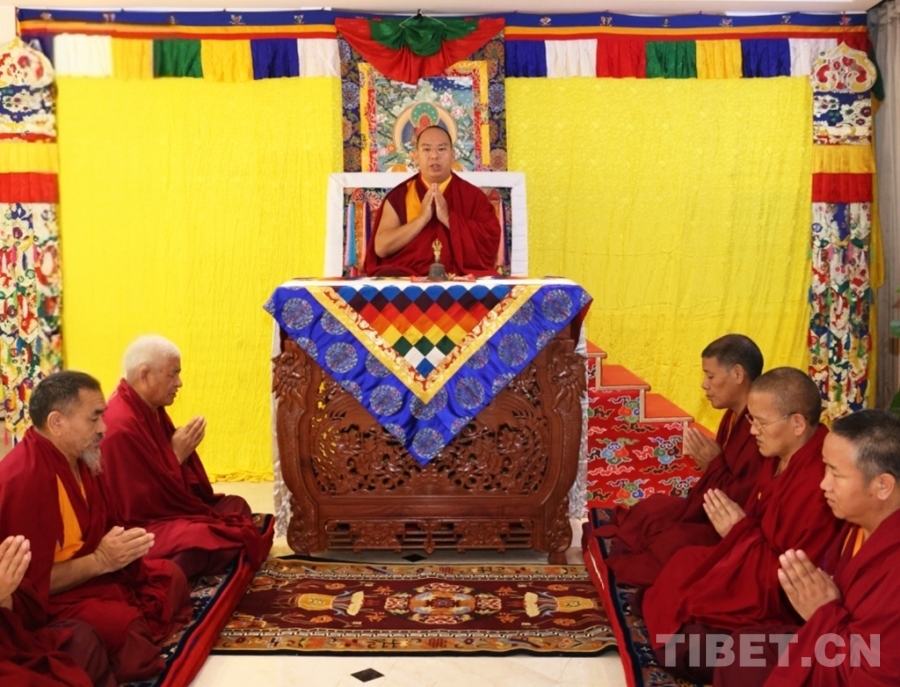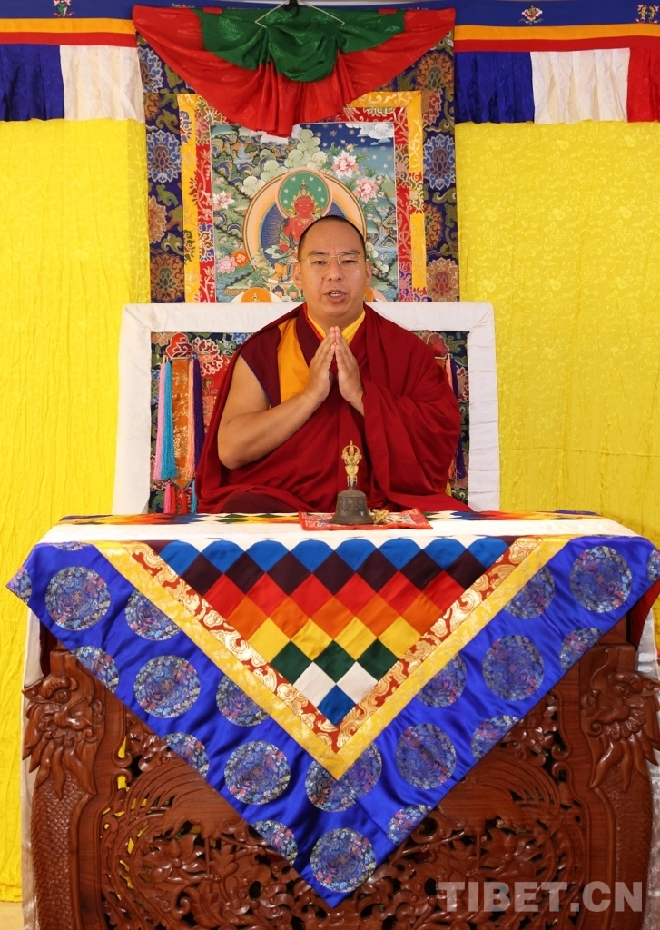 圖為班禪額爾德尼·確吉杰布為定日地震災(zāi)區(qū)誦經(jīng)祈福