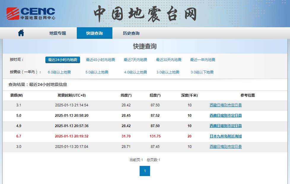 中國西藏網(wǎng)訊 據(jù)中國地震臺(tái)網(wǎng)發(fā)布的數(shù)據(jù)顯示,1月13日晚20:17:04至21:14:54,西藏自治區(qū)日喀則市定日縣1小時(shí)內(nèi)發(fā)生了4次地震。當(dāng)晚21:14左右,距離定日縣90余公里的定結(jié)縣縣城內(nèi)震感明顯,房屋及屋內(nèi)物品連續(xù)兩次晃動(dòng),人行略感不穩(wěn),每次持續(xù)時(shí)間約5秒左右,間隔約2分鐘。