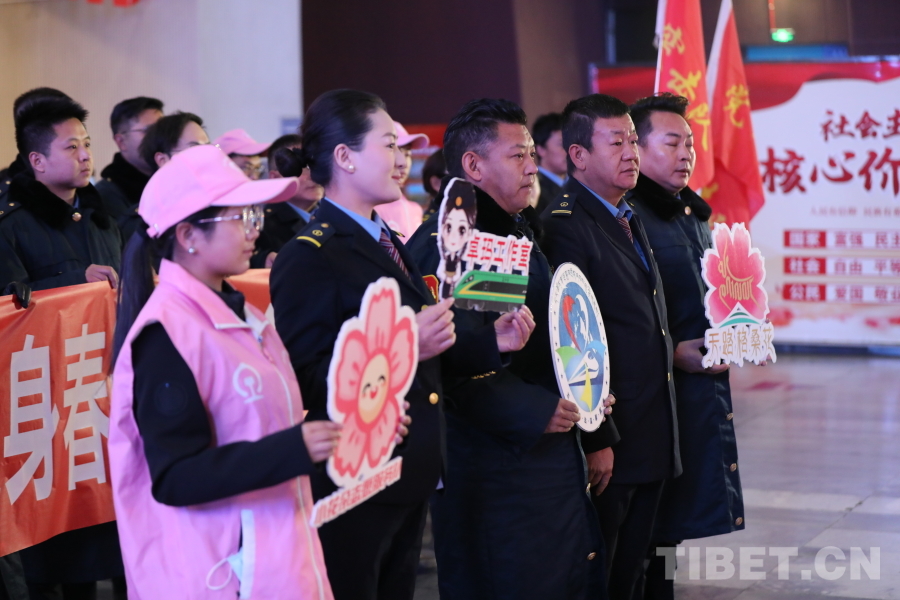 圖為拉薩車(chē)站春運(yùn)首日服務(wù)宣誓活動(dòng)現(xiàn)場(chǎng)