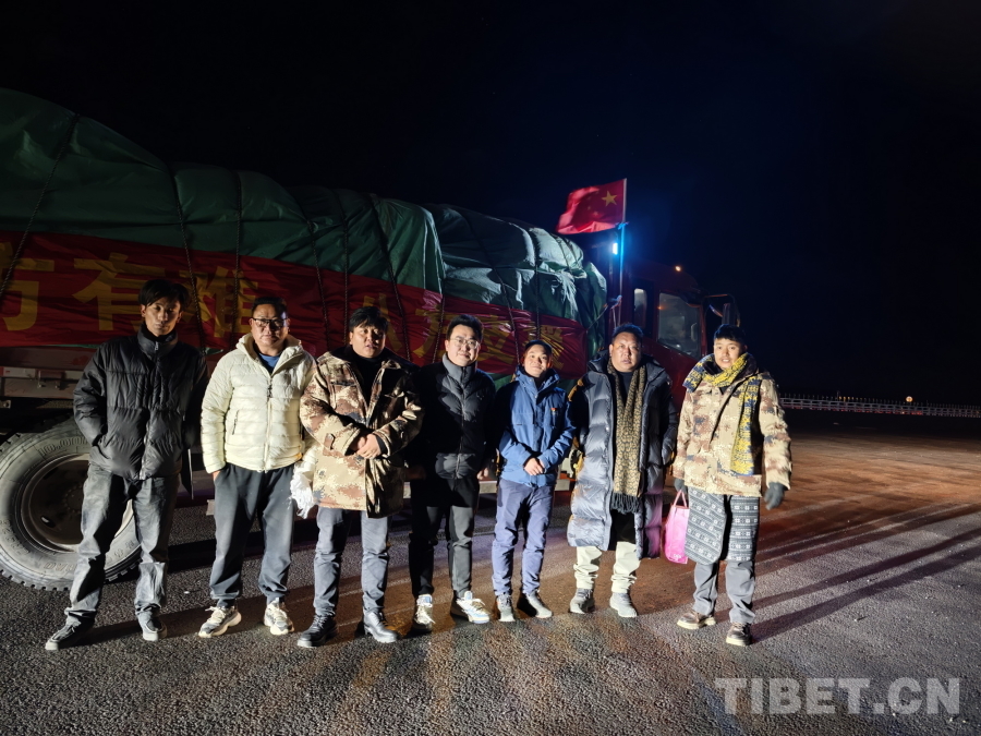 圖為西藏職業(yè)技術(shù)學(xué)院團(tuán)委書記邊巴次仁將籌措物資送到定日縣地震災(zāi)區(qū)