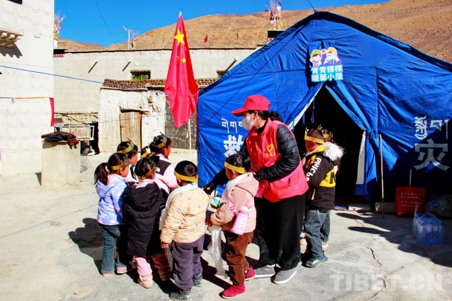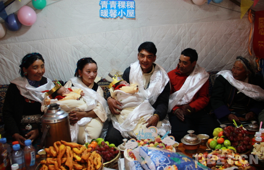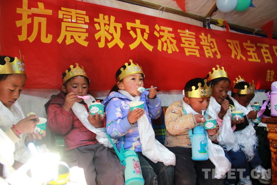 中國西藏網(wǎng)訊 午后,陽光明媚,西藏自治區(qū)日喀則市定結(jié)縣江嘎鎮(zhèn)榮貢村村民旦增點旦家院子里的臨時帳篷里傳出陣陣孩子們歡樂的笑聲歌聲。1月18日,旦增點旦的雙胞胎寶寶迎來百天,溫馨的“情暖震后帳篷,共賀雙寶百日”活動在這里舉辦。