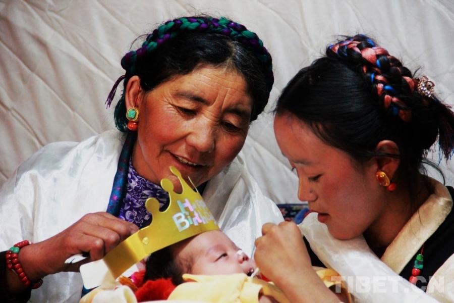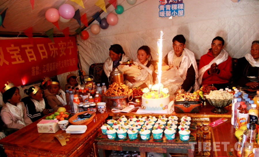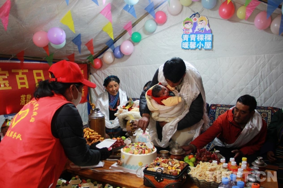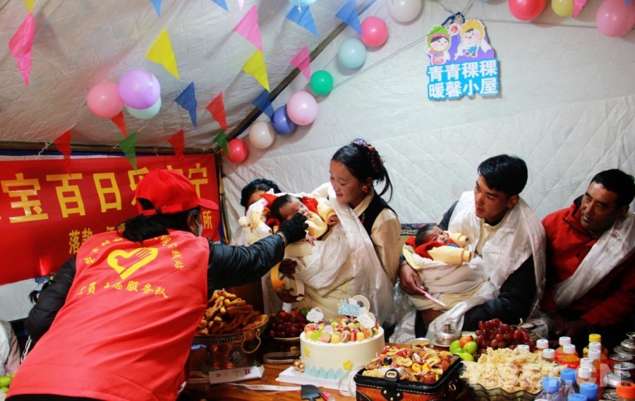圖為在西藏自治區(qū)日喀則市定結(jié)縣江嘎鎮(zhèn)榮貢村舉辦的“情暖震后帳篷,共賀雙寶百日”活動 攝影:劉莉
