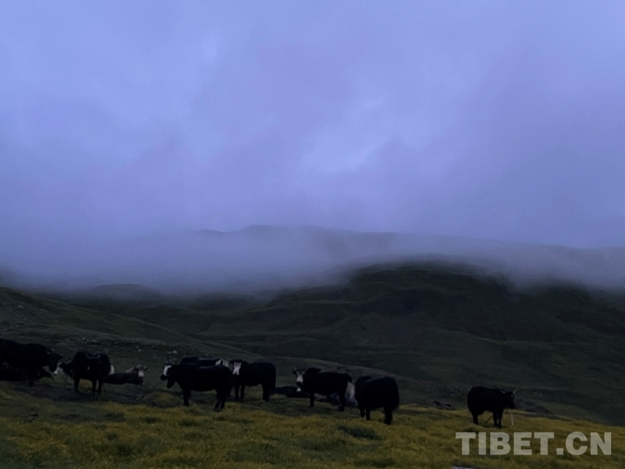 過了一會兒,天邊漸漸卷起了一個白邊,然后越來越大。后來,遠處的山、河、帳篷、牛羊都逐漸清晰了。這時,我們的工作也接近尾聲。一回頭,看到我家?guī)づ耥數(shù)臒焽枥锷鹆搜U裊炊煙,我知道,爸爸已經(jīng)準備好了早餐,等著我們回家了。(中國西藏網(wǎng) 實習生/扎西央措)