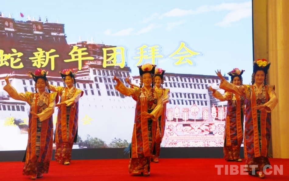 隨著拉薩城關(guān)區(qū)娘熱民間藝術(shù)團(tuán)的歌舞表演開始,《祝?!窐仿曈茡P(yáng),團(tuán)拜會正式拉開帷幕。“老班長”葉鵬穿上自己的綠軍裝重新演繹民族團(tuán)結(jié)與軍民深情的經(jīng)典歌舞《洗衣歌》;青少年學(xué)生們和著優(yōu)美的旋律,以歡快的舞步跳起《崗巴拉姆》,點(diǎn)燃了現(xiàn)場氣氛;一級演員劉媛媛演唱的《五星紅旗》《國家》飽含深情,北京首都軍之魂合唱藝術(shù)團(tuán)的大合唱《共筑中國夢》《走向復(fù)興》慷慨激昂,表達(dá)了大家對祖國的熱愛……還有悠揚(yáng)的扎木念表演、男聲獨(dú)唱等節(jié)目豐富精彩。大家在歡聲笑語中共同感受著節(jié)日的喜悅,共同祝愿西藏在新的一年里再創(chuàng)輝煌,共祝西藏各族人民幸福安康,羅薩扎西德勒。(中國西藏網(wǎng) 記者/王茜 實(shí)習(xí)生/扎西央措)