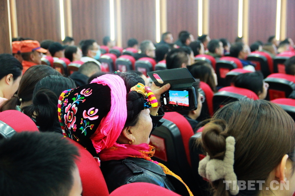 圖為“在云端·我的援藏故事”涉藏州縣行活動在四川省甘孜州丹巴縣開展宣講,當(dāng)?shù)厝罕娪檬謾C(jī)記錄 攝影:劉莉
