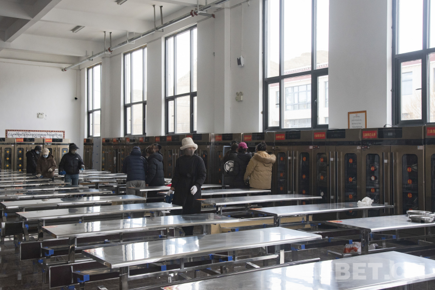 圖為長(zhǎng)所鄉(xiāng)完全小學(xué)集中安置辦學(xué)點(diǎn)內(nèi)新規(guī)劃的學(xué)生食堂,教職工們正在清理食堂衛(wèi)生?!z影:趙振宇