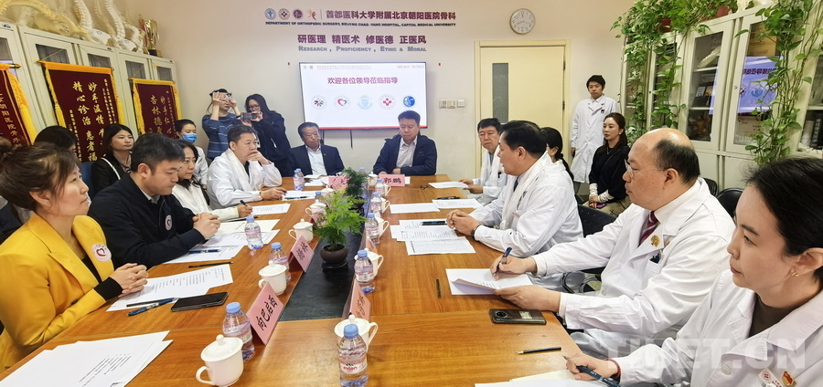 圖為北京朝陽醫(yī)院黨委書記、理事長紀(jì)智禮介紹醫(yī)院有關(guān)情況北京朝陽醫(yī)院供圖