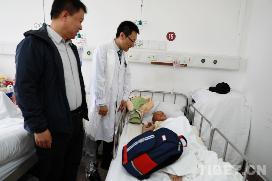 中國西藏網(wǎng)訊 4月1日,“同心·共鑄中國心”組委會執(zhí)行主席金大鵬一行來到首都醫(yī)科大學(xué)附屬北京朝陽醫(yī)院,探望在這里接受救治的5名四川省甘孜藏族自治州石渠縣脊柱側(cè)彎患兒,了解手術(shù)及恢復(fù)情況,并對醫(yī)院的全力治療表示感謝。