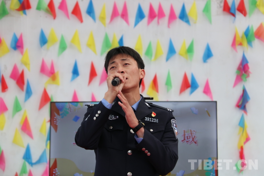 圖為錯那邊境檢查站民警為晚會獻上藏語歌曲《囊謙》