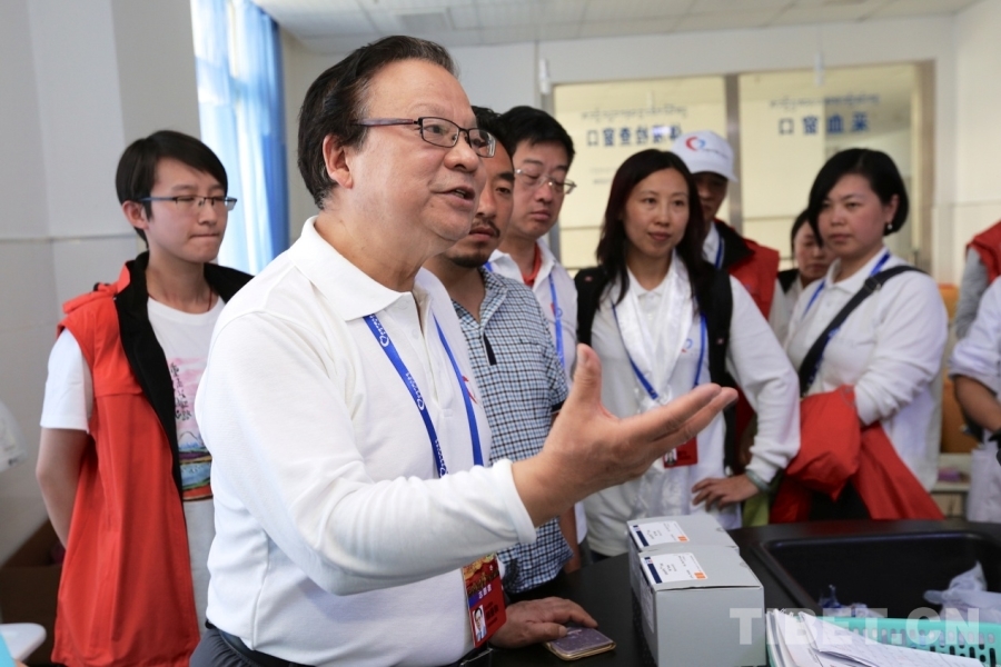 圖為2016年“同心·共鑄中國心”四川甘孜行活動中,郎景和院士(前排左三)在四川省甘孜州道孚縣指導(dǎo)當(dāng)?shù)蒯t(yī)務(wù)工作者 北京同心共鑄公益基金會供圖