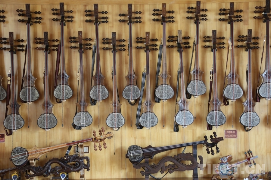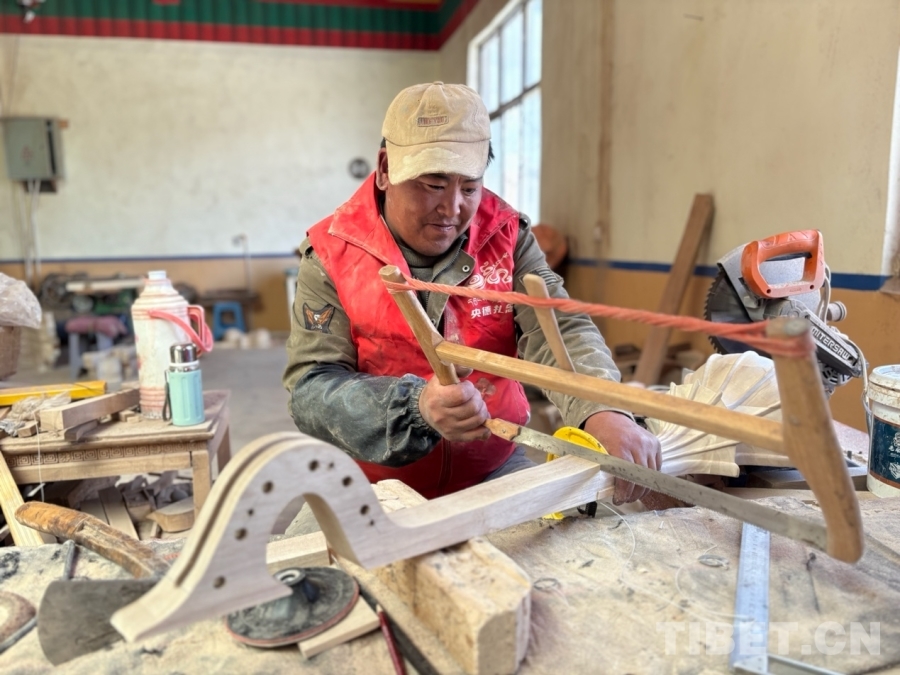 作為“堆諧之鄉(xiāng)”拉孜縣的代表性樂器,扎念琴制作已有數(shù)百年歷史。合作社負(fù)責(zé)人頓加介紹,一把純手工扎念琴需選用楊木做共鳴箱、花梨木制琴桿,經(jīng)過刨削、雕鏤、蒙皮等20余道工序,一個人耗時6天左右方能完成。“琴頭雕馬象征吉祥,背面‘巴絡(luò)'凸紋既美觀又防滑,這些都是祖輩傳下的智慧。”如今,這項(xiàng)非遺技藝通過“致富帶頭人+合作社+農(nóng)戶”模式,年生產(chǎn)扎念琴超500把,帶動社員人均年收入達(dá)4.5萬元。