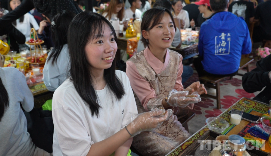 “讓孩子們交朋友、多交流。”這也是青海省政協(xié)常委、本次研學(xué)團(tuán)團(tuán)長(zhǎng)吳漢忠最初的想法。在位于海晏縣的文迦牧場(chǎng)的星空下,這場(chǎng)“廣度”之旅迎來(lái)溫暖篇章。海北藏族自治州的青少年與香港青少年們圍坐在一起,手把手教香港的朋友制作糌粑,還熱情招呼大家喝奶茶、跳鍋莊,自豪地介紹起自家草原上的牛羊?!棒佤尉褪且檬诌@樣順時(shí)針或者逆時(shí)針揉搓,最后成團(tuán),就能吃啦。還可以蘸一蘸我們的奶茶再吃?!毕愀蹖W(xué)生們也積極回應(yīng)著,相互用“扎西德勒”打著招呼,吃著親手制作的糌粑。有人驚喜發(fā)現(xiàn)“這個(gè)糌粑味道好像我家鄉(xiāng)的芝麻糖啊,好香好甜”。