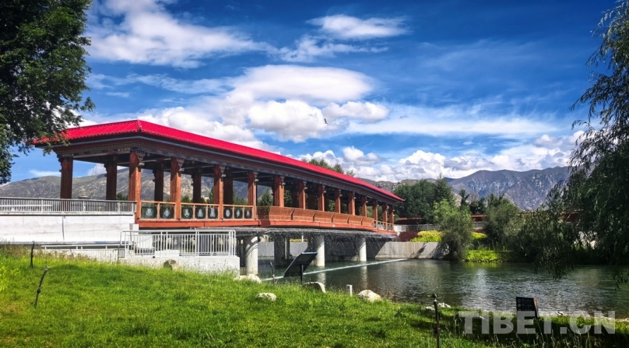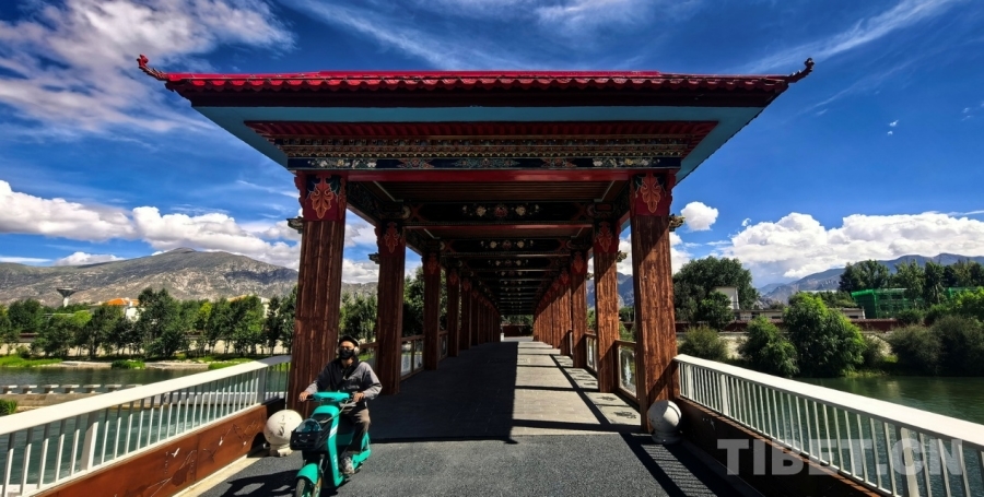 圖為拉薩兩島內(nèi)河綠色生態(tài)廊道上連通南北岸的廊橋 攝影:劉莉