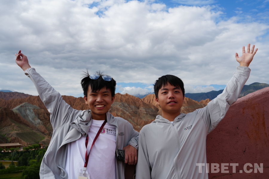 圖為范頌言(左)和朋友在貴德國家地質(zhì)公園 攝影:鄒慧