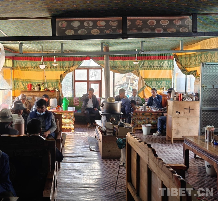43歲的拉姆和家人共同經(jīng)營著一家藏式茶館,主要供應(yīng)甜茶、肉餅、藏面、炸土豆、砂鍋餃子等深受當(dāng)?shù)厝罕娤矏鄣拿朗场@愤€在茶館對(duì)面開設(shè)了一間便民小賣部,貨架上整齊擺放著各類生活必需品,成為村民們?nèi)粘2少I的溫馨驛站。