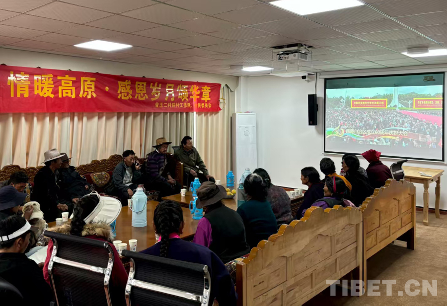 中國西藏網(wǎng)訊 在西藏自治區(qū)成立60周年的喜慶日子里,西藏自治區(qū)昌都市邊壩縣普玉二村農(nóng)村幸福苑內(nèi)歡聲笑語、其樂融融。駐村工作隊(duì)舉辦“情暖高原·感恩歲月頌華章”主題慶祝活動(dòng),全村老少歡聚一堂,共同觀看西藏自治區(qū)成立60周年慶祝大會(huì)盛況,感受輝煌時(shí)刻。